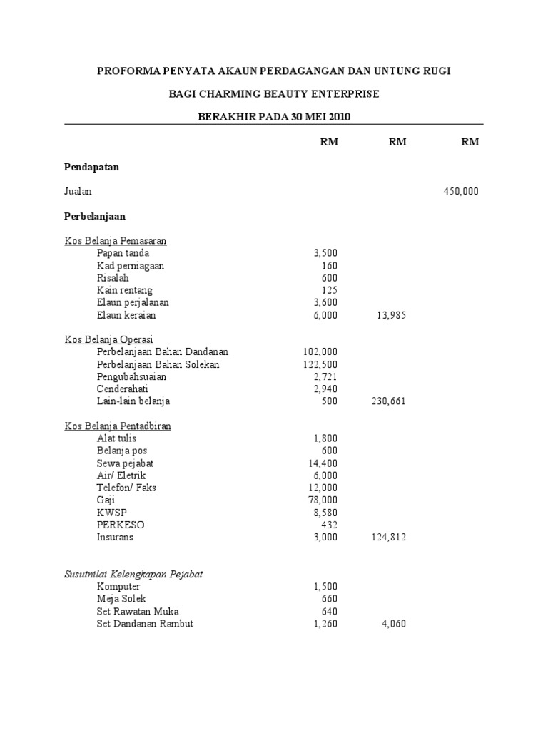 Proforma Penyata Akaun Perdagangan Dan Untung Rugi Pdf